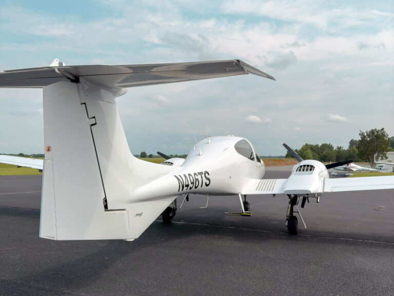 The Diamond DA42 Twin Star is a twin-engined low-wing cantilever monoplane, commonly used as a general aviation aircraft for touring and training purposes. It is equipped with a retractable tricycle landing gear arrangement and uses a T-tail. The DA42 incorporates a combination of advanced features within the company’s first twin-engine design. The airframe is composed of composite materials, making extensive use of carbon fiber-reinforced polymers throughout its structure; this construction provides the aircraft with a suitable passive safety level to conform with the established European Aviation Safety Agency (EASA) Part 21 rules, as well as relatively efficient aerodynamics and essentially unlimited airframe life. The carbon-fiber main wing spars possess exceptional crashworthiness.
